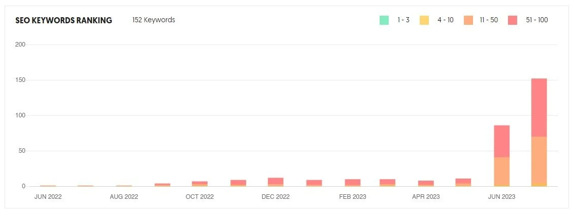 152 keywords in positions 1-100 (from blogs and main site pages)